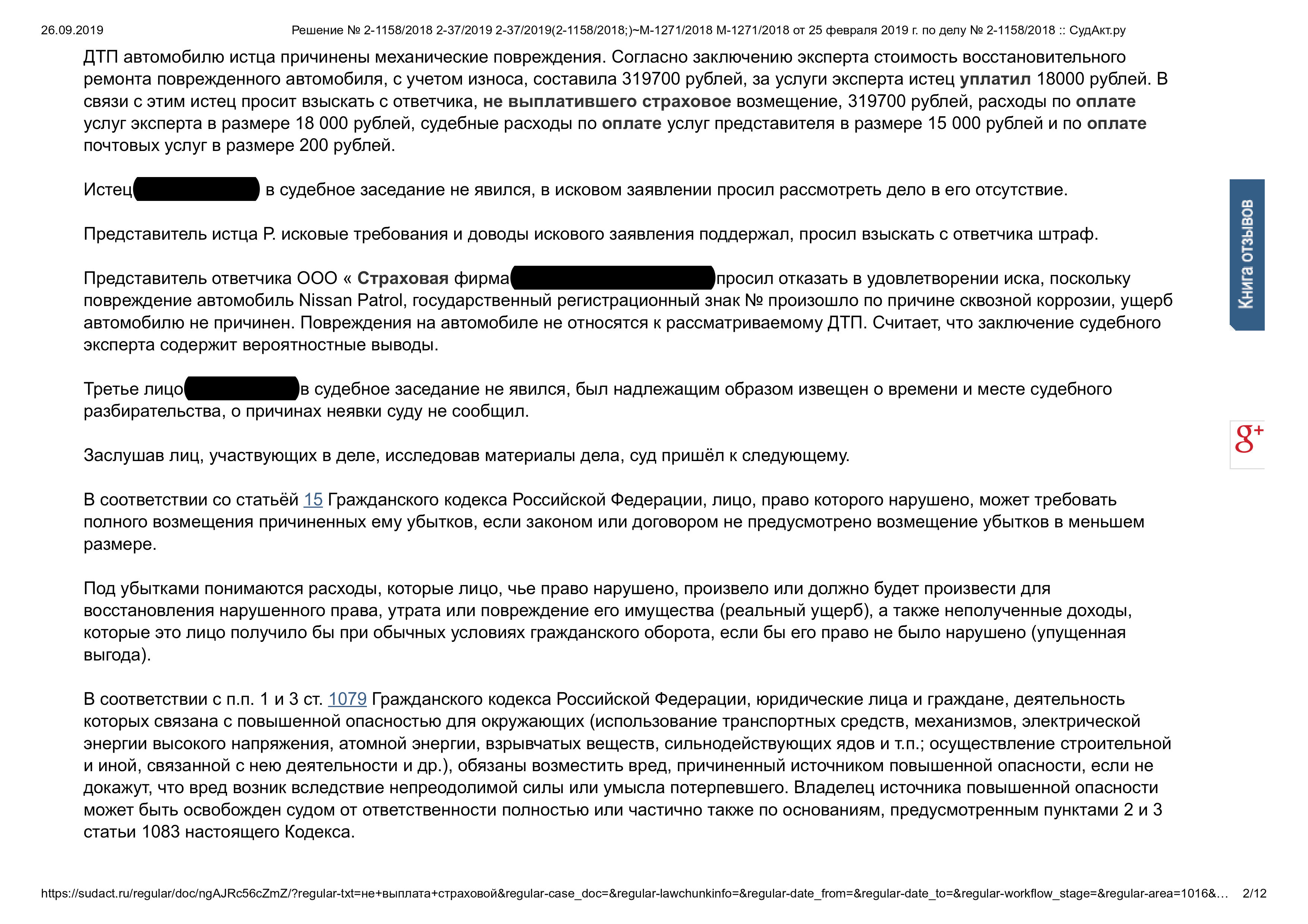 • Удовлетворен иск к страховой компании на ремонт автомобиля