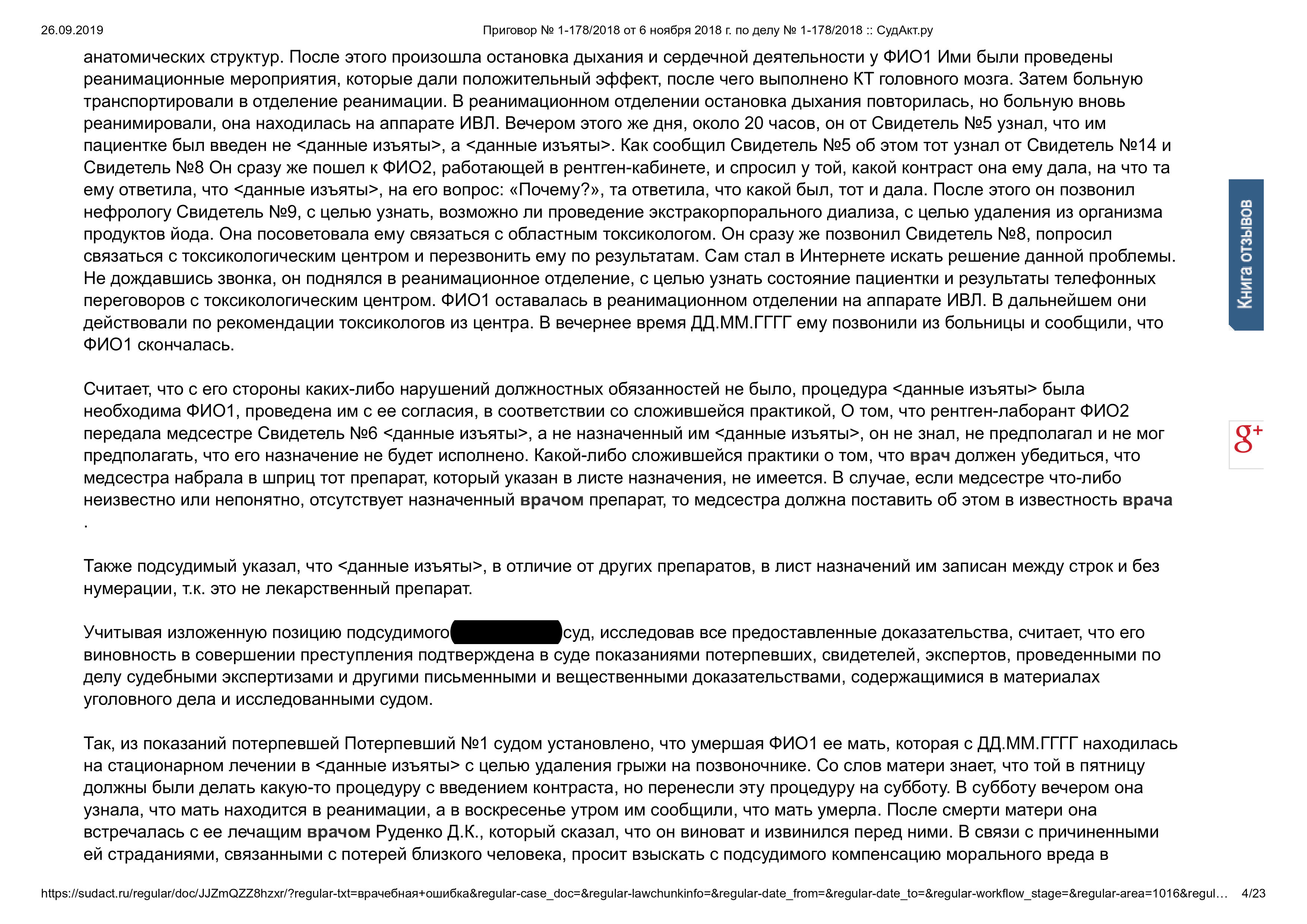 История показывает: халатность в медицине может стоить жизни, и за это наступает реальная уголовная ответственность. Врач обязан лично контролировать все, что вводит пациенту, и не имеет права перекладывать эту обязанность на медсестер. А родственники погибших должны знать: наказать виновного — это только первый шаг, компенсацию надо взыскивать с медучреждения.