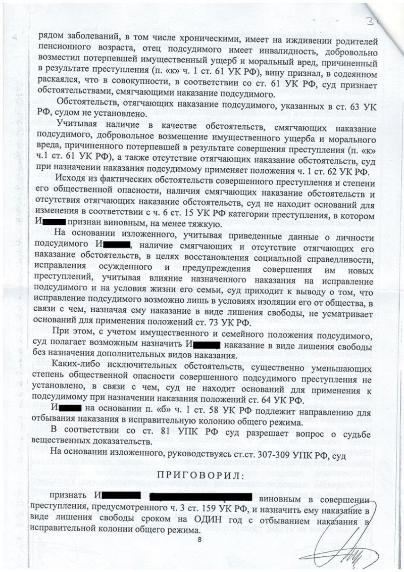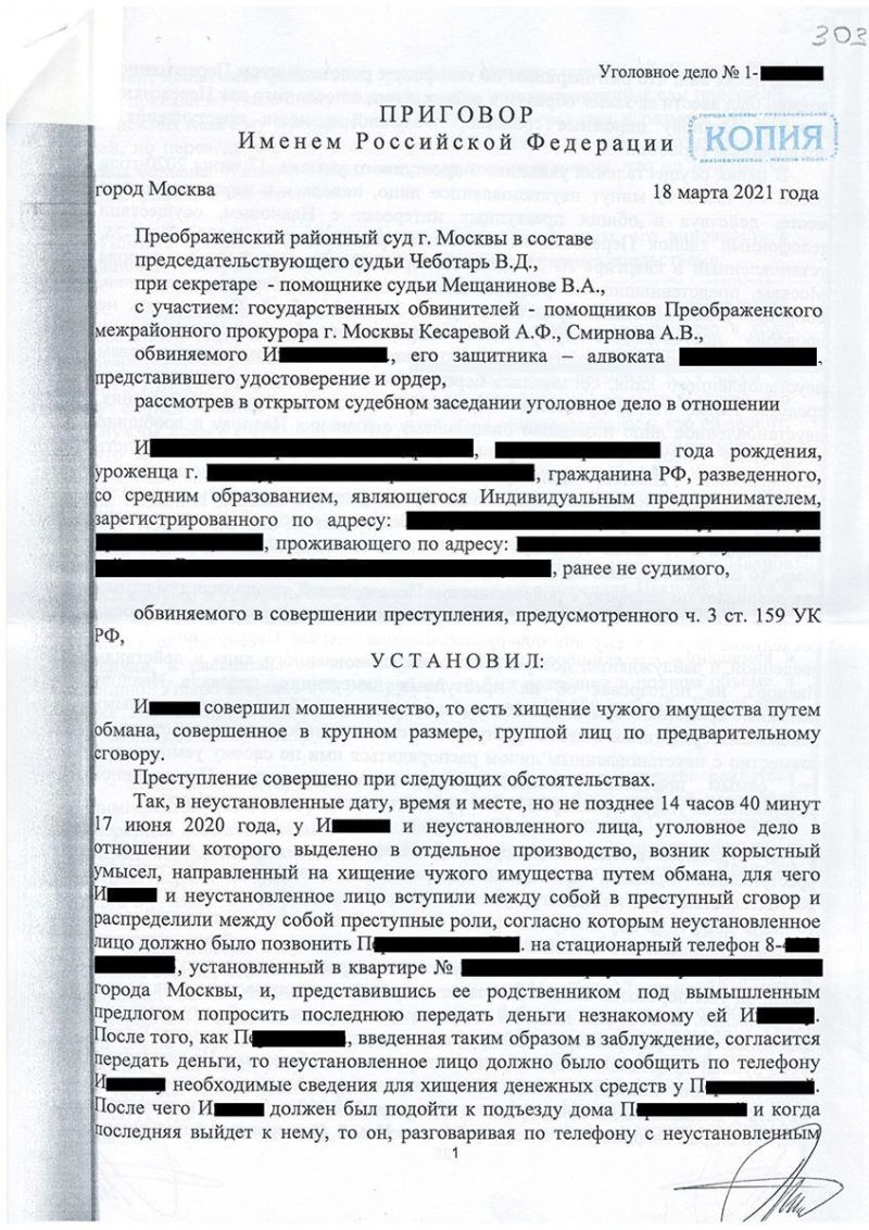 Клиент И. обвинялся в совершении преступления, предусмотренного ч. 3 ст. 159 УК РФ – мошенничество. Уголовное дело было передано в суд.