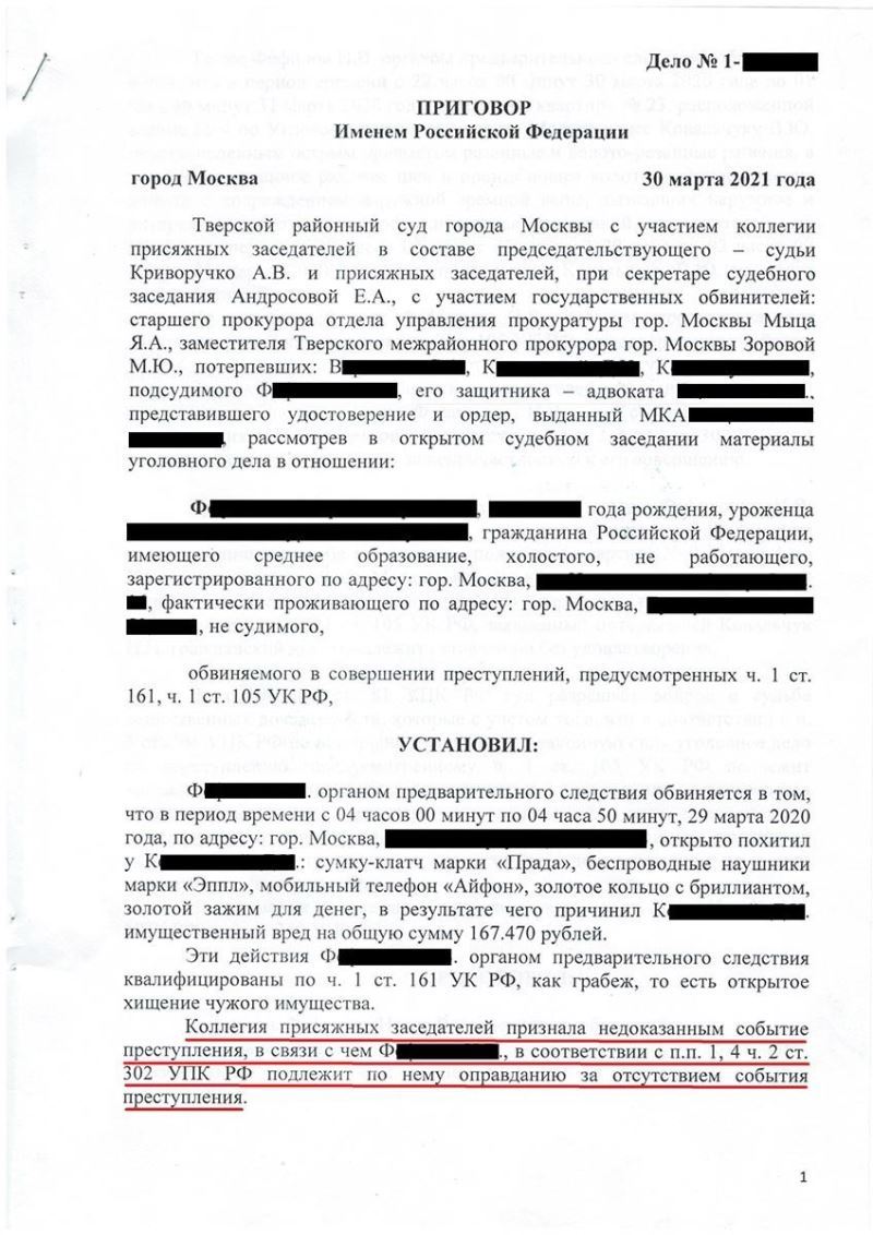 Клиент Ф. обвинялся в совершении преступлений, предусмотренных ч. 1 ст. 161 УК РФ (грабеж) и ч. 1 ст. 105 УК РФ (убийство).