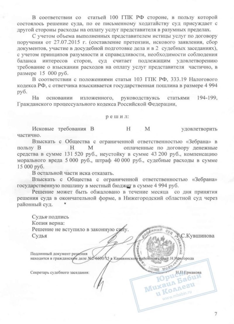 Юрист добился снижения штрафа за неудовлетворение требований потребителя более чем в 2 раза